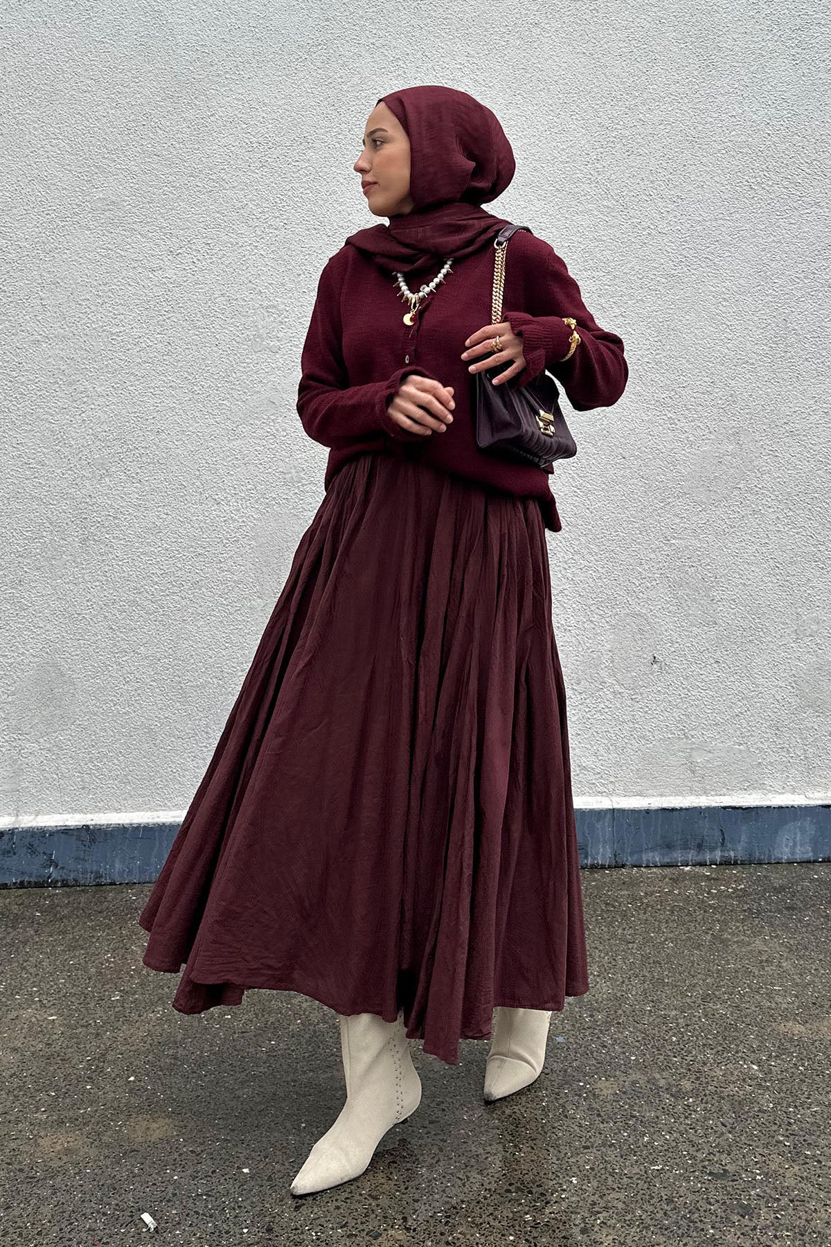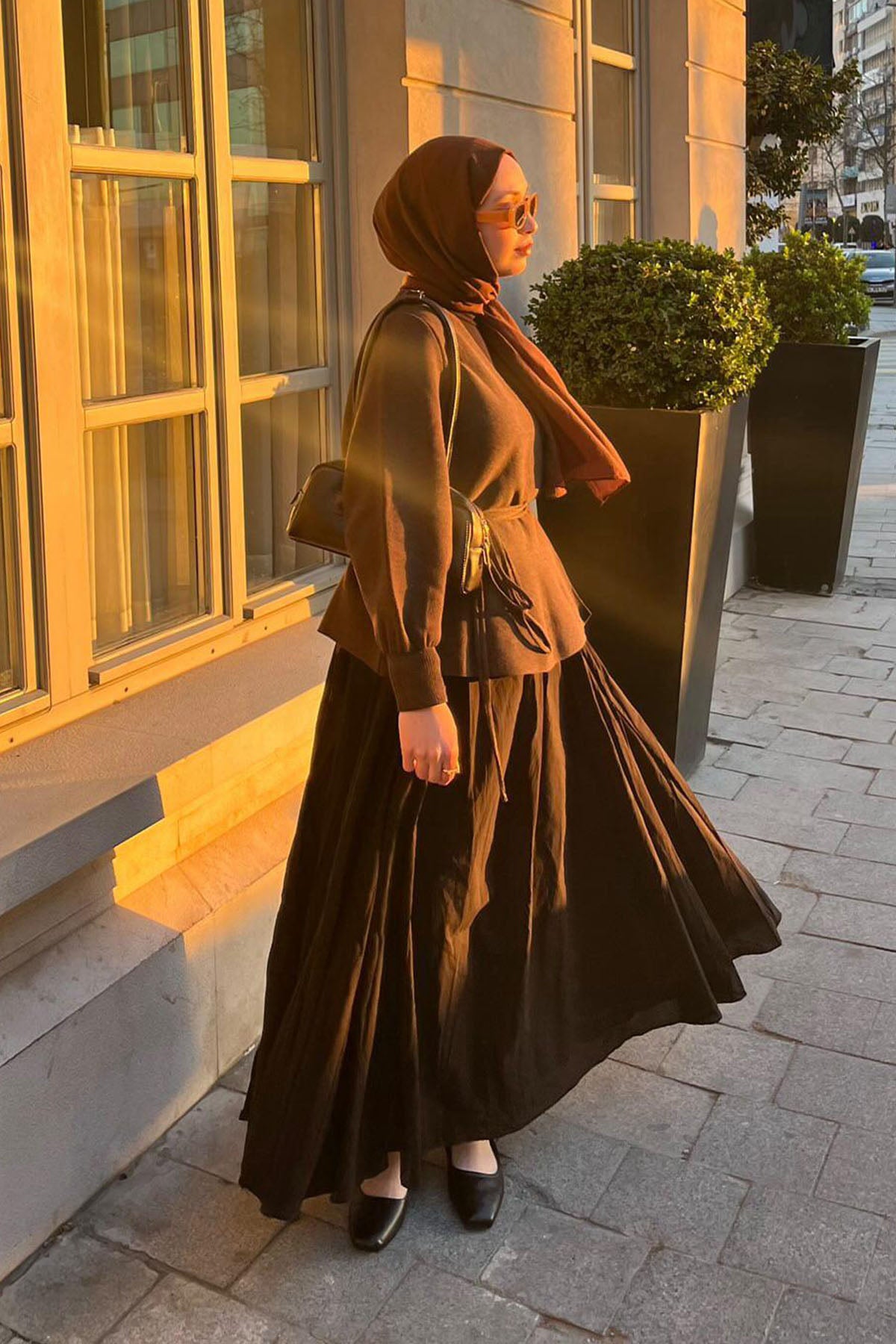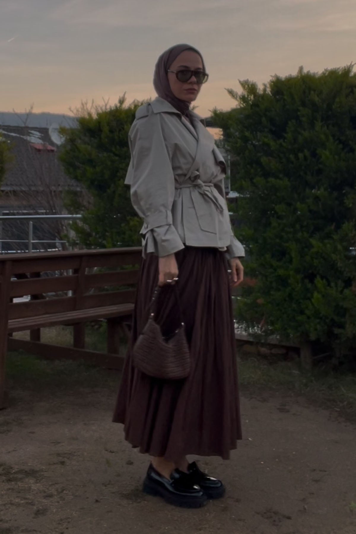 Ürün Vual kumaş olup astarlıdır.Ürün bel kısmından pilelidir.
